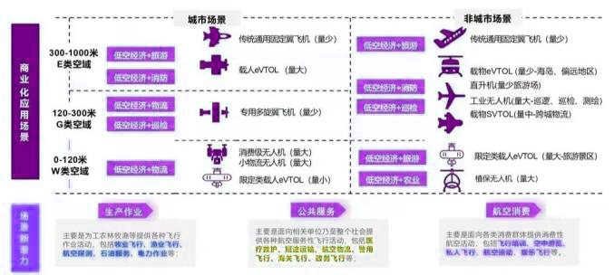 低空经济是以科技创新为引领,以各种有人驾驶和无人驾驶航空器的各类低空飞行活动为牵引,积极开展相关航空器的研发、生产和销售,并广泛辐射带动低空飞行活动相关的基础设施建设、飞行服务、产业应用、技术创新、安全监管等相关领域产业融合发展的综合性经济形态。其相关产品主要包括无人机、eVTOL(电动垂直起降飞行器)、直升飞机、传统固定翼飞机等,涉及居民消费和工业应用两大场景。