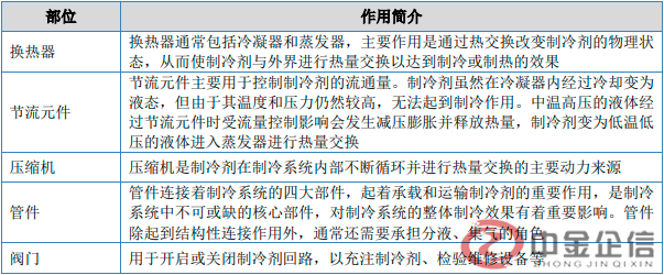 (2)制冷配件简介:制冷配件即制冷系统的配件,主要包括换热器(蒸发器和冷凝器通常合称换热器)、节流元件、压缩机、管件、阀门等。