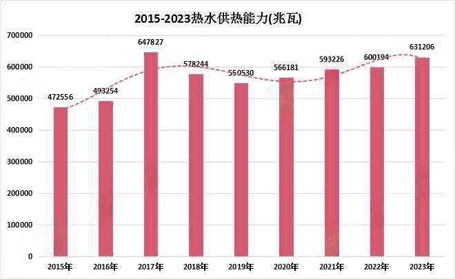 从热水供热能力来看,2013-2023年整体上升但增速放缓,由于近年倡导节能减排,热水对于供热来说能力相对下降。2023年供热能力为631205.93兆瓦,同比增长5.17%。